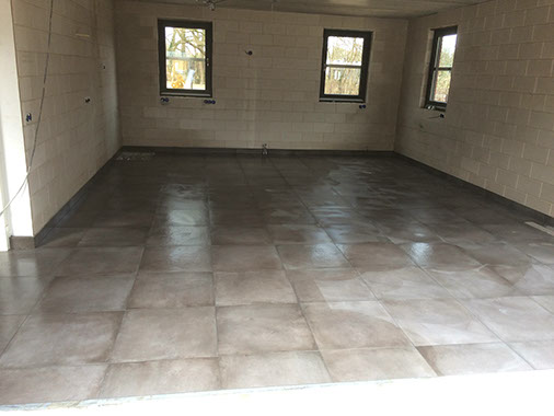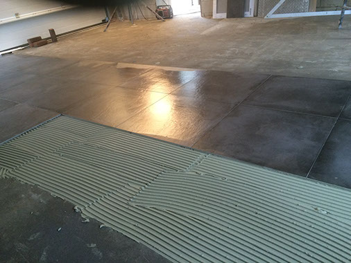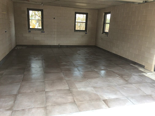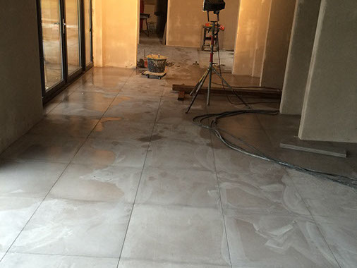 Zowel de twee badkamers boven als de toiletten beneden zijn betegeld met keramische vloertegels 70x70. De garage vloer is betegeld met een keramische vloer tegel 60x60.