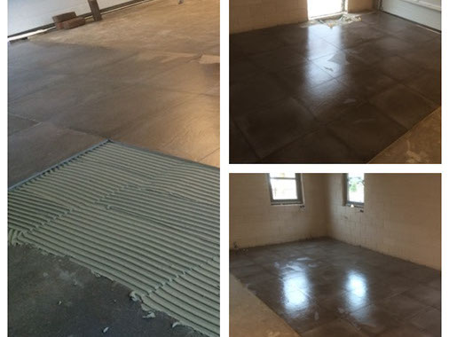 Zowel de twee badkamers boven als de toiletten beneden zijn betegeld met keramische vloertegels 70x70. De garage vloer is betegeld met een keramische vloer tegel 60x60.