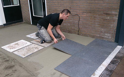 Het varieerd van het betegelen van badkamers , terrassen , keukens, vloeren zowel lijmen als in de specie.